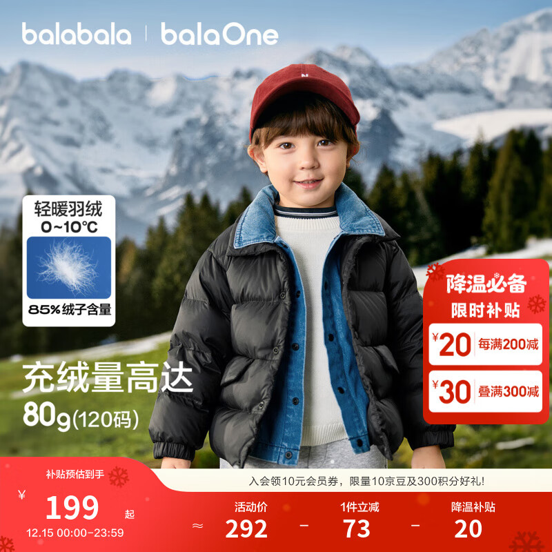 包邮 巴拉巴拉童装儿童羽绒服男女童2025新款宝宝冬装拼接外套三防保暖上衣百搭 黑色牛仔-灰鸭绒-85%绒子 110 充绒量70g
