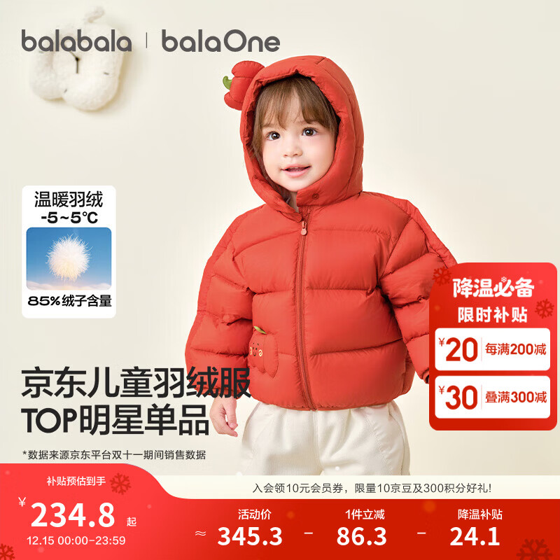 包邮 巴拉巴拉童装儿童羽绒服宝宝男女童2025冬装新款婴儿外套保暖上衣泡芙羽绒 红色小南瓜61003-白鸭绒 100 (充绒量81g 适合2-3岁)